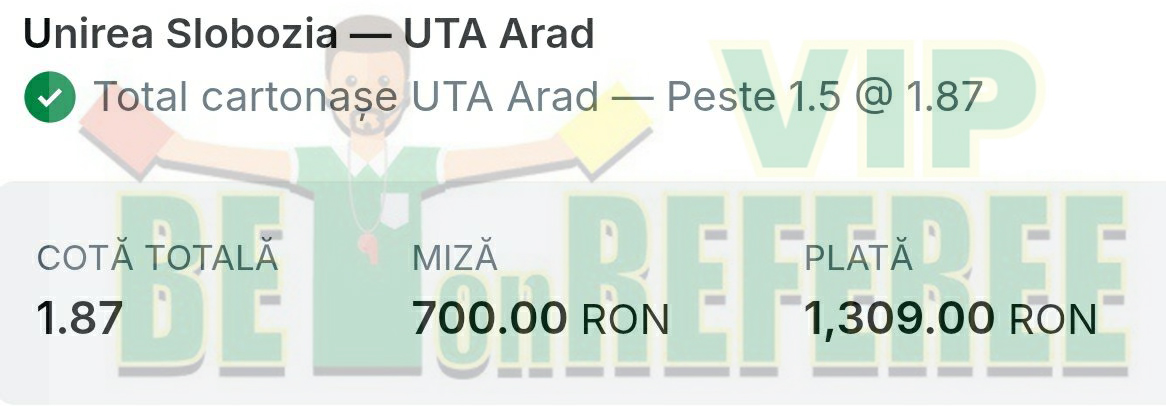 | April 13 | Unirea Slobozia v UTA Arad | o 1.5 UTA | 700 | 1.87 | Won | 609 |