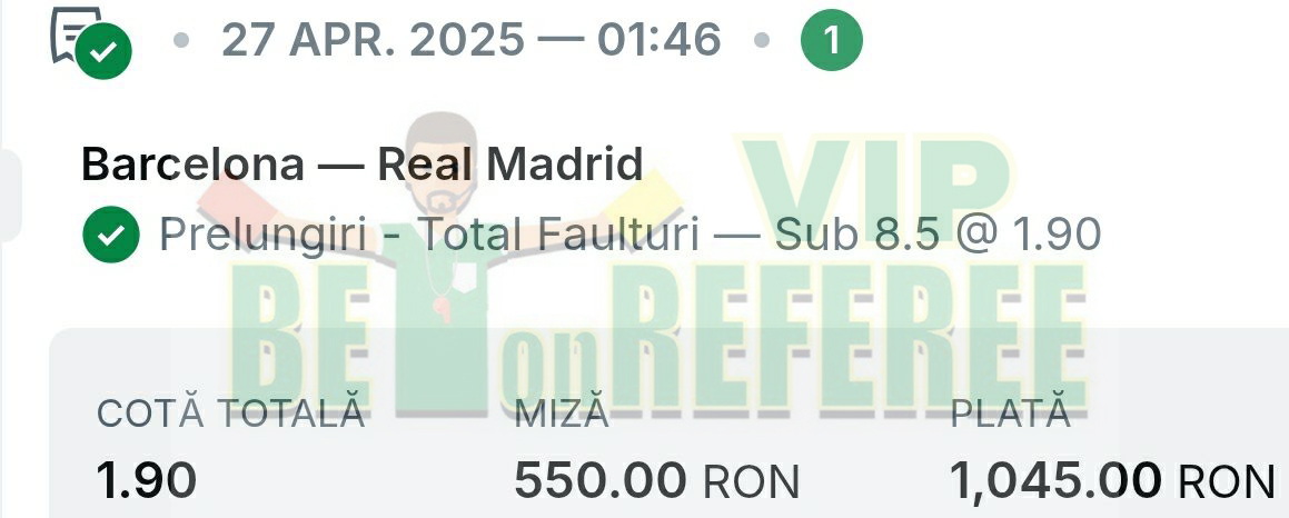| April 26 | Barcelona v Real Madrid | u 8.5 fouls in prelungiri | 600 | 1.9 | Won | 540 |