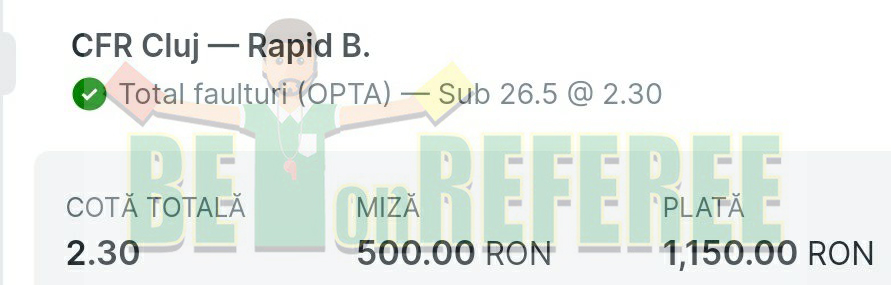 | May 05 | CFR Cluj v Rapid Bucharest | U 26.5 fouls | 700 | 2.3 | Won | 910.0 |