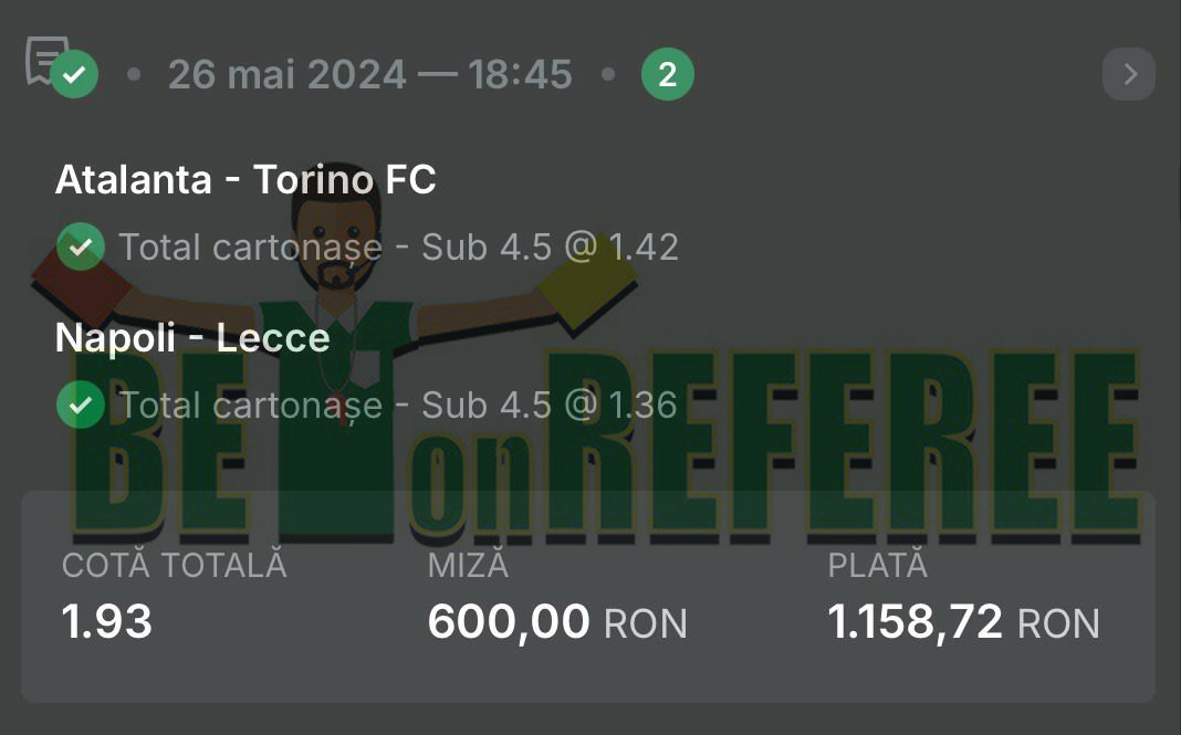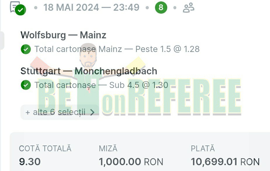 Pariuri BetOnReferee Mai 2024
