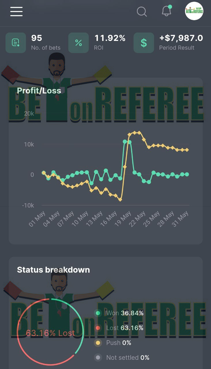 | May 22 | Atalanta v Leverkusen | U 30.5 fouls | 800 | 1.72 | Lost | -800.0 |